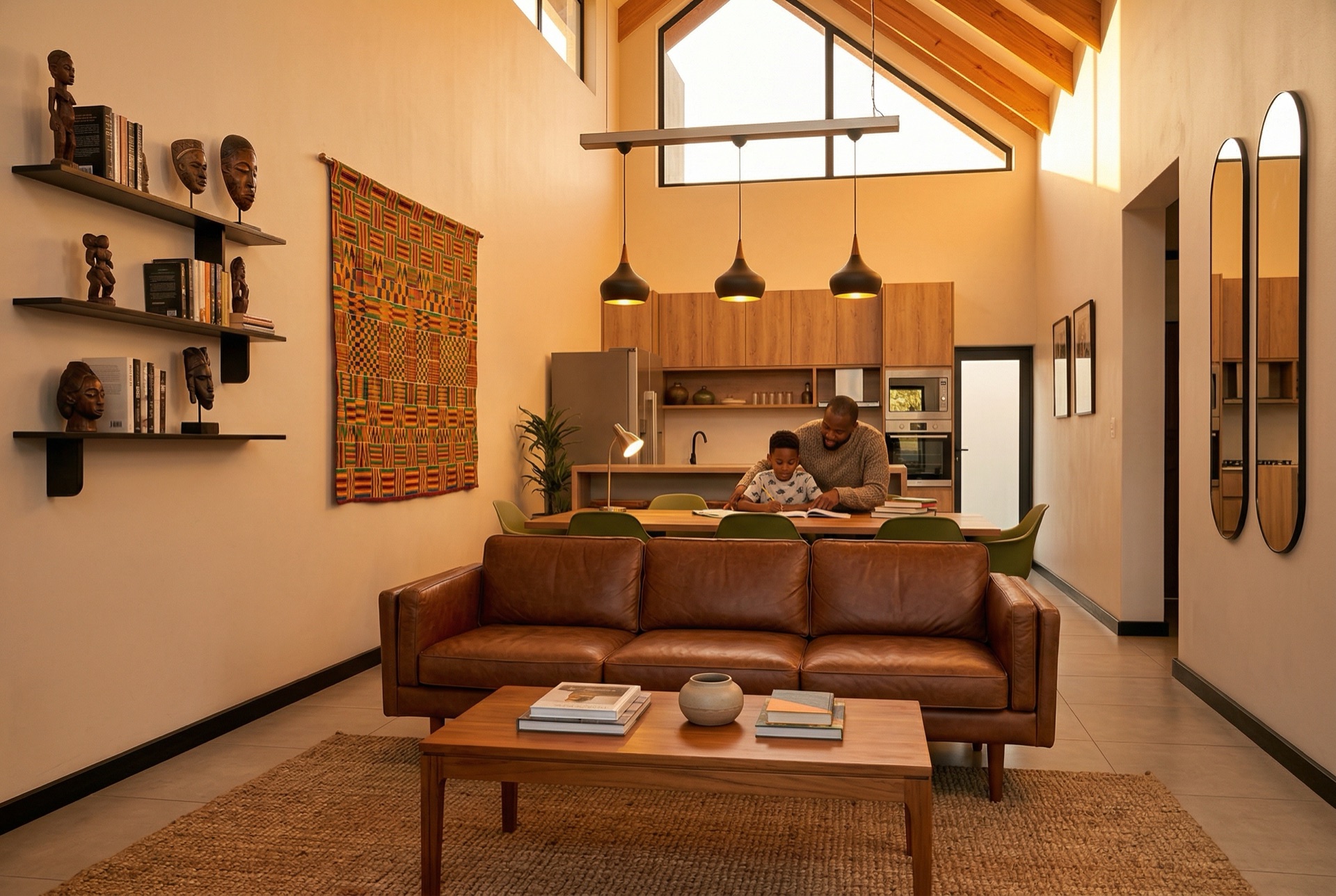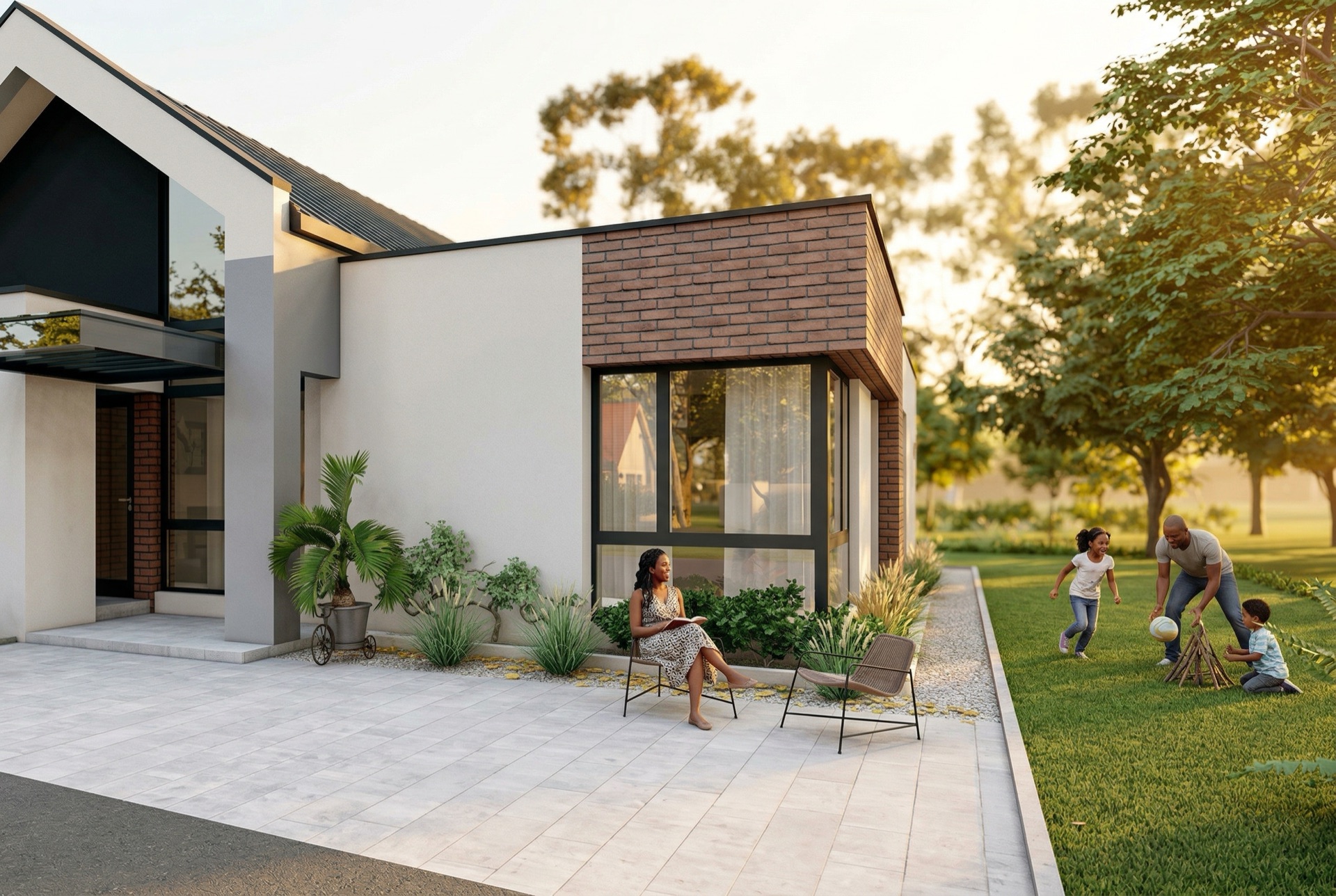 View on property.co.zw →All faithful to the actual property — same architecture, same materials, same dimensions. Different furniture, different families, different moments. 7 scenes also have AI video versions below.